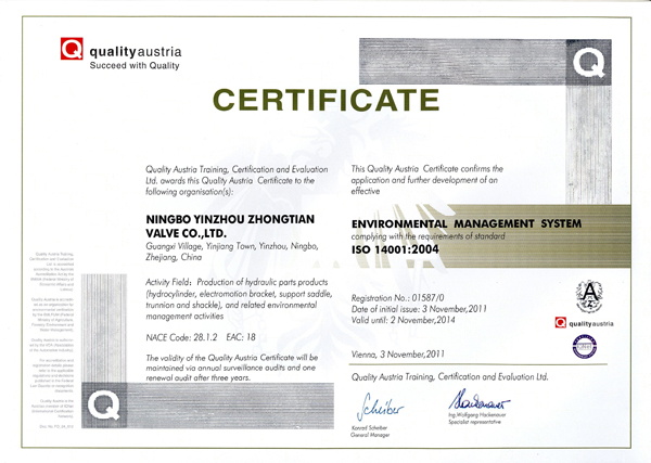 在全體員工的共同努力下,中天順利通過ISO 14001:2004環(huán)境管理體系認(rèn)證。
